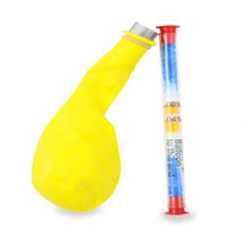 La prueba rápida de alcohol Alcotest, es una prueba semi-cuantitativa que consta de un tubo con cristales reactivos que muestran el contenido de alcohol en escala de %BAC, así como un globo con boquilla para recolectar la muestra de aliento.