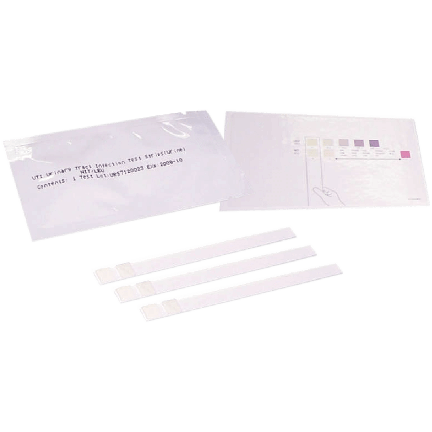 Las tiras de prueba de infección del tracto urinario UTI son para la detección de leucocitos y nitritos en la orina. Se usa como una ayuda en el cribado de la infección del tracto urinario (ITU). La prueba es una tira de plástico firme sobre la que se realizan pruebas de Leucocitos y Nitritos almohadillas están adjuntos. Si la prueba es positiva, la almohadilla de prueba de leucocitos debe ser de color beige a morado oscuro, y la prueba de nitrito la almohadilla debe ser uniforme de rosa a rosa intenso.